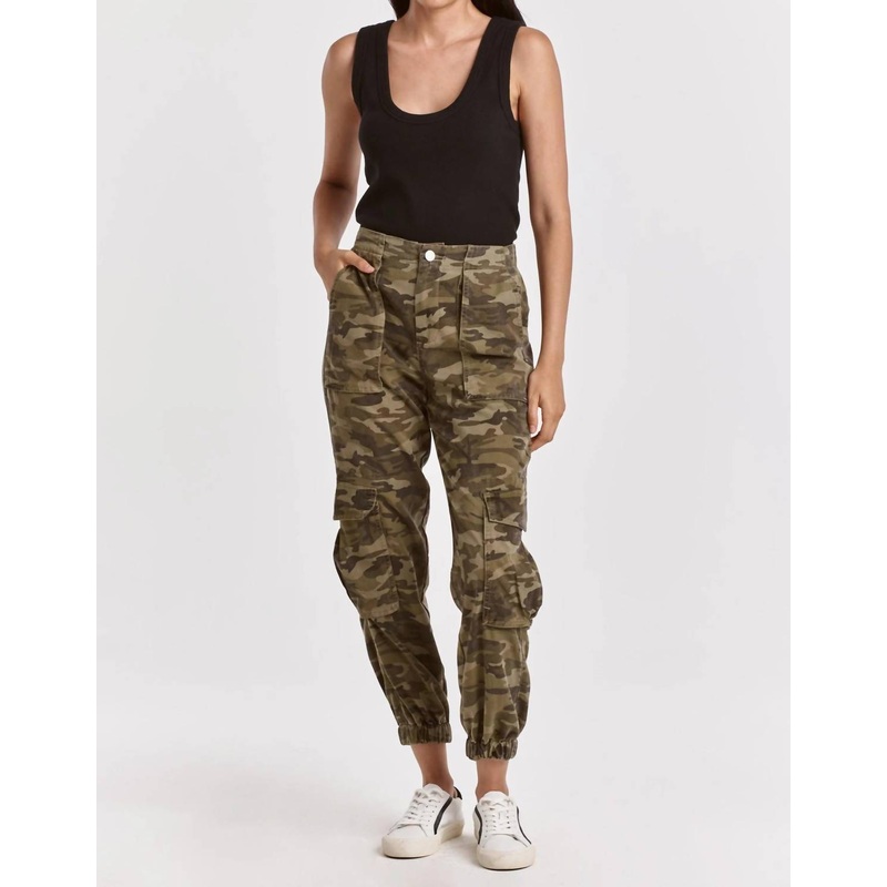Upgrade your wardrobe with these cropped pants, designed to merge sophistication and wearability. The tailored fit ensures ultimate comfort during long days or nights out.Meet the Sandy Super High Rise Ankle Trouser by DEAR JOHN DENIM, a standout piece in Hunter Camo that effortlessly blends style and functionality. These pants offer a super high rise with an 11″ front rise, feature an elastic waistband with a shank button and zip fly closure, and include versatile front utility and side cargo pockets. Crafted from 65% Lyocell and 35% Polyester, they promise comfort with a relaxed fit, complemented by a 10.5″ leg opening and a 26.5″ inseam. Made for everyday adventures, care is simple with machine wash cold and tumble dry low instructions.