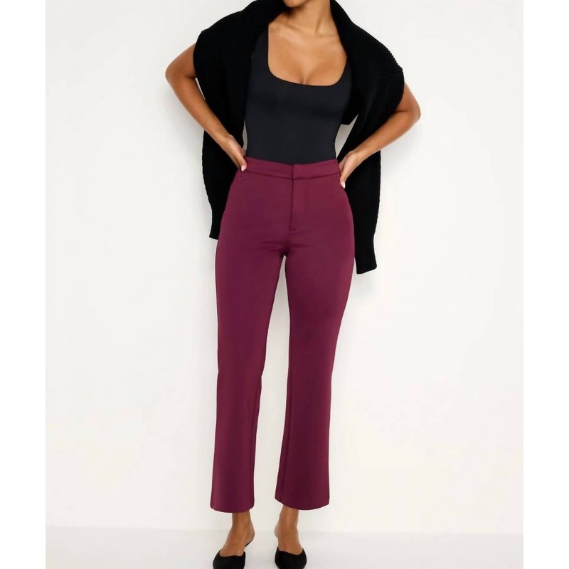 Elevate your style with the Scuba Cropped Straight Trousers by GOOD AMERICAN, a chic addition to your wardrobe in rich Oxblood. These trousers feature a high-rise waist and straight leg design, ensuring both comfort and a flattering fit. Made from a compac
