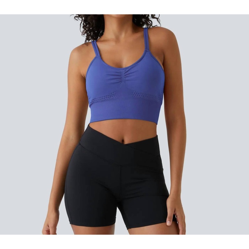 Seamless Ruched Crisscross Bra In Amparo Blue