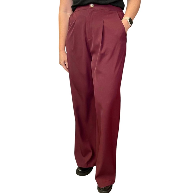 Elegant pleats for a dressy look. Wine-colored design for a sophisticated touch. Wide leg style for comfort and flair.