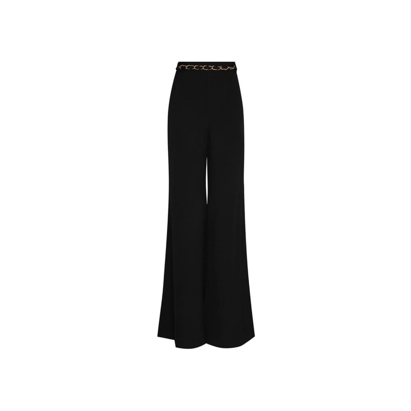 The trend report says boot-cut is in and that’s exactly why we love this style. They are fit to perfection, flattering on any body type, and comfortable. They will be your go-to all season long.Introducing the Skinny Flare Pant by Zimmermann, part of the Fall 2023 Luminosity Collection. This high-waisted flared pant in classic black features a striking gold chain belt and is crafted from 100% viscose. Designed with French seams, belt loops, and a removable gold chain belt for versatile styling. Closure – Button closure. Perfect for a chic, sophisticated look, these pants offer a stylish twist to classic fits with their unique flare.