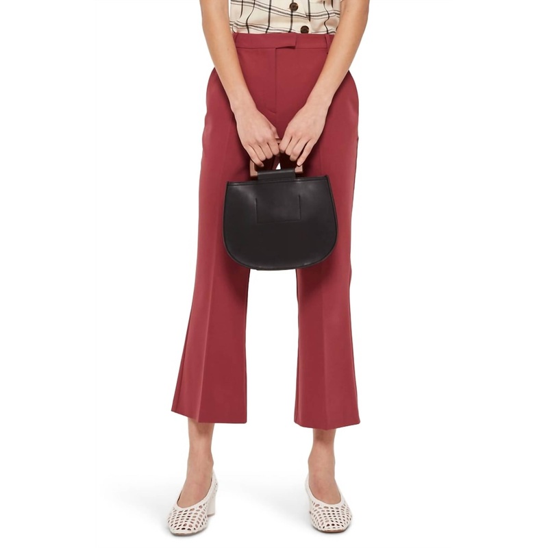 Enhance your wardrobe with this trendy cropped number, designed to blend style and practicality. The comfortable fit allows for easy all-day wear. The perfect length to pair with your favorite mules.Slim Kick Flare Cropped Pants In Rust Brown Elongate those stems in these work-or-play pants, styled with handy pockets and flattering flared hems.Zip fly with button closureHigh riseSide-seam pockets76% polyester, 18% viscose, 6% elastane Machine wash coldInseam 25.5″