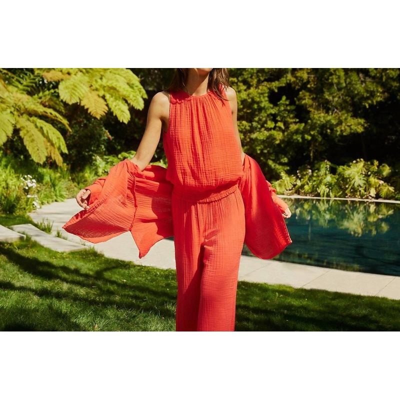 Introducing the Smocked Gauze Pant by Felicite, a stylish addition to your wardrobe in a vibrant Hot Pink. These wide-leg pants feature a pull-on closure with an elastic waistband and are crafted from 100% cotton gauze, ensuring a comfortable fit. The desi