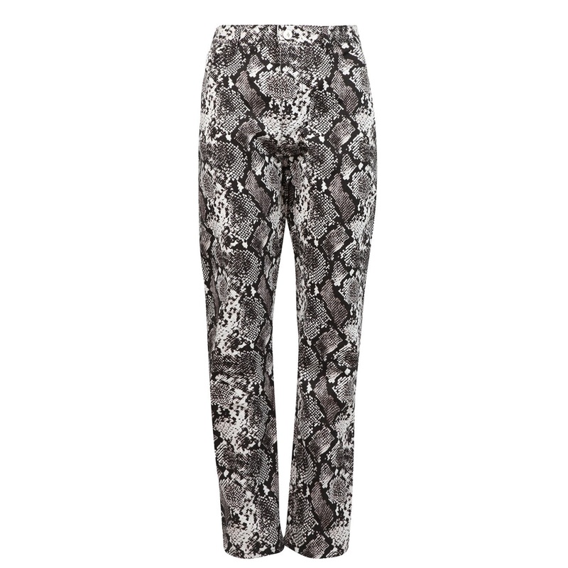 Print pants from Attico featuring a classic silhouette, long length, high-rise, five pocket design, belt loops, front button and zip closure and an allover snakeskin print. Style it with a black body suit, leather jacket, leather boots and a silver shoulde