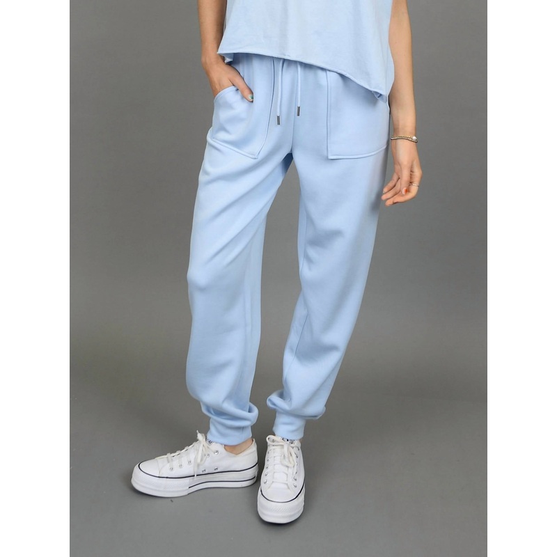 The perfect pant for running around town and looking cool while doing it.Step into comfort with the Soft Scuba Joselle Joggers by RD Style in a serene Bluebell hue. These joggers feature a mid-rise, pull-on closure with a comforting drawstring waistband an