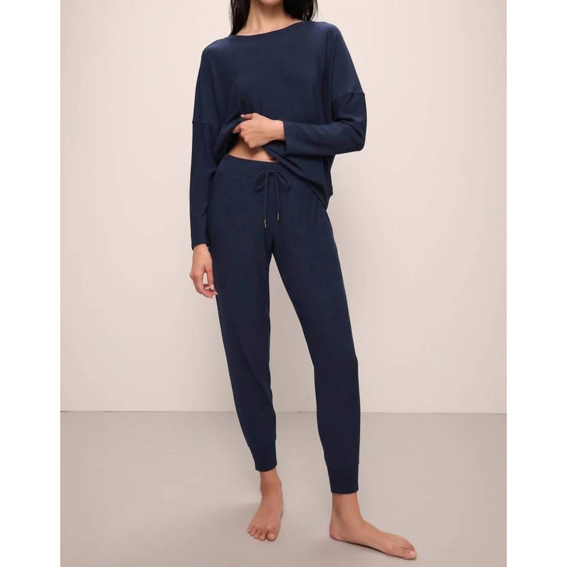 The perfect pant for running around town and looking cool while doing it.Introducing the Eberjey Softest Sweats Jogger, the epitome of comfort and style in a solid navy hue. These women's mid-rise joggers are crafted from 95% TENCEL Modal and 5% Elastane,