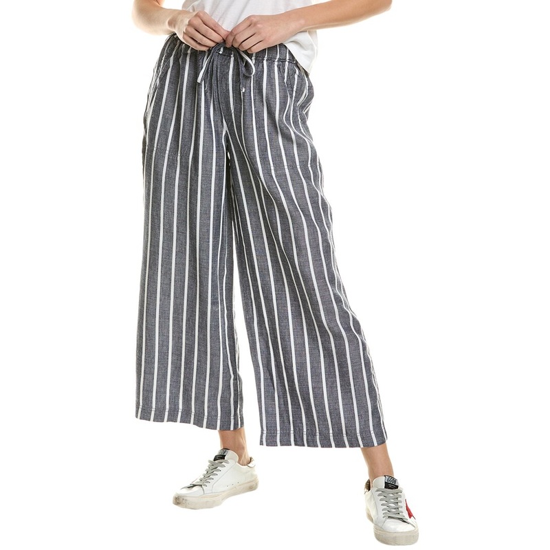 Introducing the Splendid Linen-Blend Pant, a versatile and comfortable addition to your casual wardrobe. This navy and white pant features an elastic drawstring waist and four-pocket styling, perfect for everyday wear. The inseam is approximately 27 inches