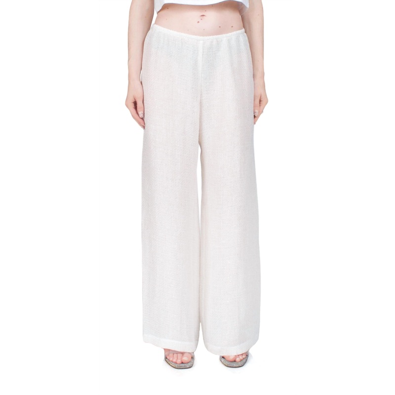 Elevate your summer wardrobe with the Stella Wide Leg Sequin Linen Pant by LESET. Proudly crafted in Los Angeles, these mid-rise pants feature a relaxed wide leg silhouette in a shimmering sequined fabric composed of 74% Linen, 22% Polyester, and 4% Polyamide. The elasticized waistband ensures comfort with its convenient pull-on design, making it perfect for all-day wear. Available in versatile white, these pants fit true to size and are ideal for adding a touch of sparkle to your look. Model is 5ft 5in and wears a size S.