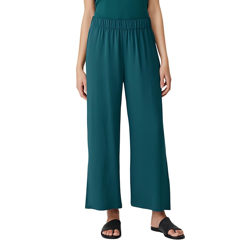 A perfectly tailored straight leg that you'll want in every color!Introducing the Straight Ankle with High Slit Pant by Eileen Fisher, a timeless piece in a stunning Aegean hue. Crafted from luxurious silk, these pants feature a stylish straight leg design