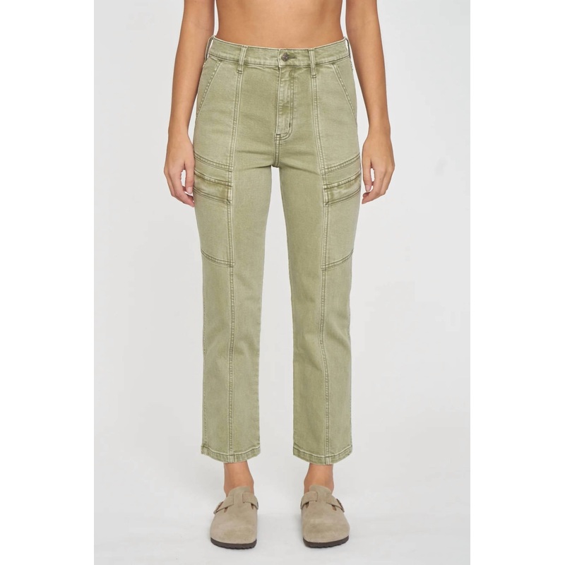 A perfectly tailored straight leg that you'll want in every color!Introducing the DAZE Straight Up High Rise Cargo Pant in a stylish Matcha wash, perfect for a vintage-inspired look. These straight-leg pants feature a high-rise design with an 11" rise, com