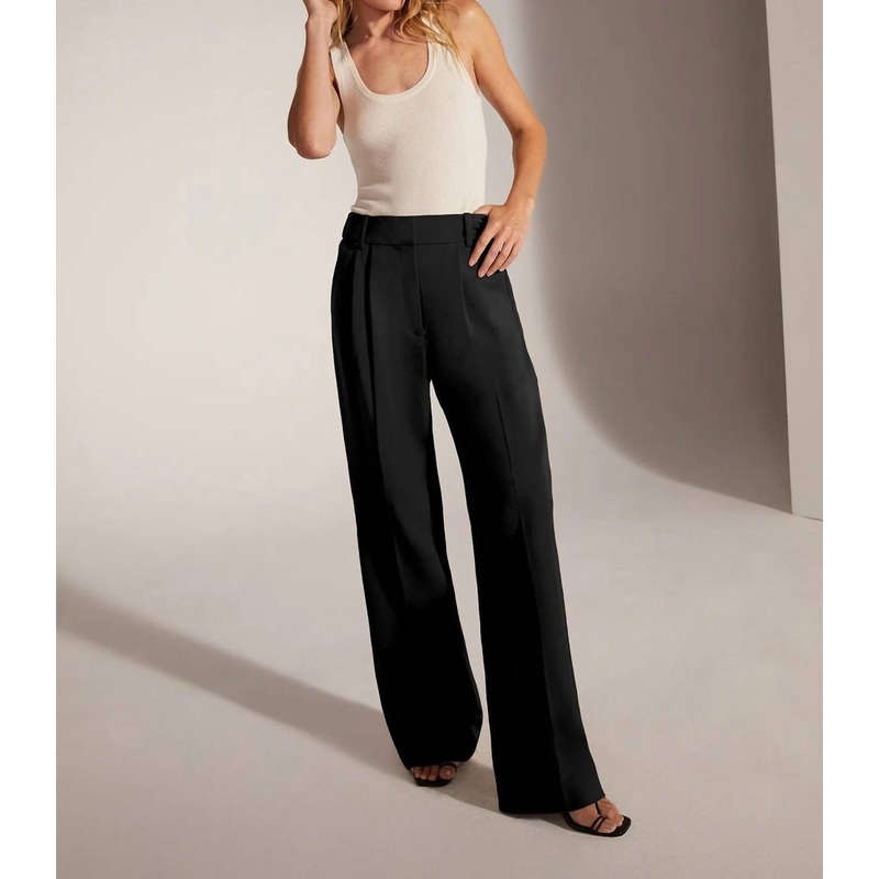 Experience ultimate comfort and style with The Dream Favorite Pants by Favorite Daughter. These black, wide-leg trousers are crafted from a premium blend of 63% polyester, 32% rayon, and 5% spandex, providing a fluid silhouette and relaxed fit. Key features include front pleats, front pockets, and an elastic back waistband for ease. Care for them by machine washing on a cold gentle cycle and tumble drying on low.