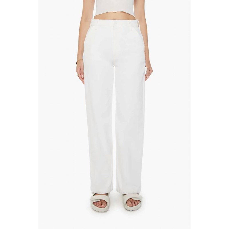 Showcasing a super high-waisted fit and a loose, straight leg style in a stunning Totally Innocent white. Crafted from semi-rigid MOTHER SUPERIOR denim. Feature utility-inspired patch pockets, a hammer loop, and a sleek 32-inch inseam with a clean hem. Equipped with a button closure. Not just stylish but practical.