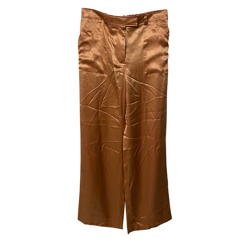 TOM FORD’s Spring ’20 collection features so many lustrous fabrics in a variety of beautiful hues – these pants are cut from fluid silk-satin in a peach shade that the house calls ‘Parfait’. Made in Italy, they have a partially elasticated high-rise waist and flattering wide-leg silhouette. Style yours with a black top and accessories.Tom Ford Wide Leg Pants in Gold SilkColor – orangeMaterial – SilkCondition – excellentSize – IT44/LSign of wear – NoSKU – 85691 Dimensions – Length – 1175 mm