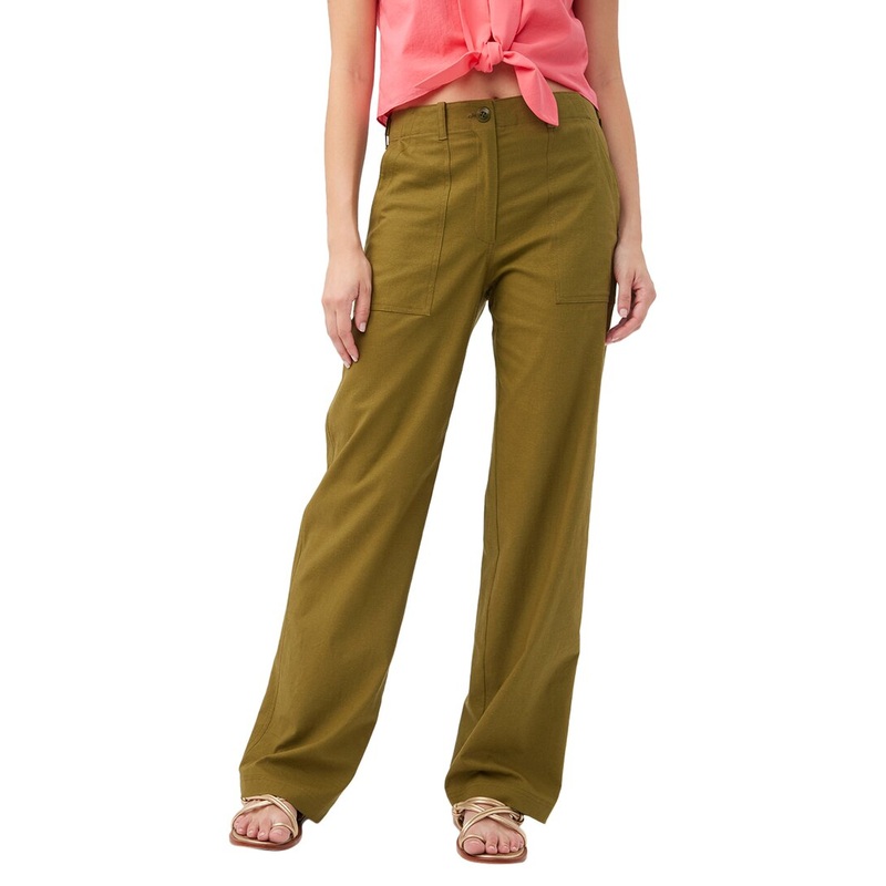 Introducing the Trina Turk Antonia Linen-Blend Pant, a must-have piece for your casual wardrobe. This mid-rise pant features a front patch pocket and a zip/button closure for added style and convenience. Made with a luxurious blend of linen, rayon, and spandex, this pant is both comfortable and stylish. The Antonia Linen-Blend Pant in Sorrento Sage offers a fresh and contemporary look, perfect for any occasion. Hand or machine washable, this imported pant is easy to care for. Elevate your look with Trina Turk, a brand known for its colorful and modern designs inspired by California’s vibrant culture.