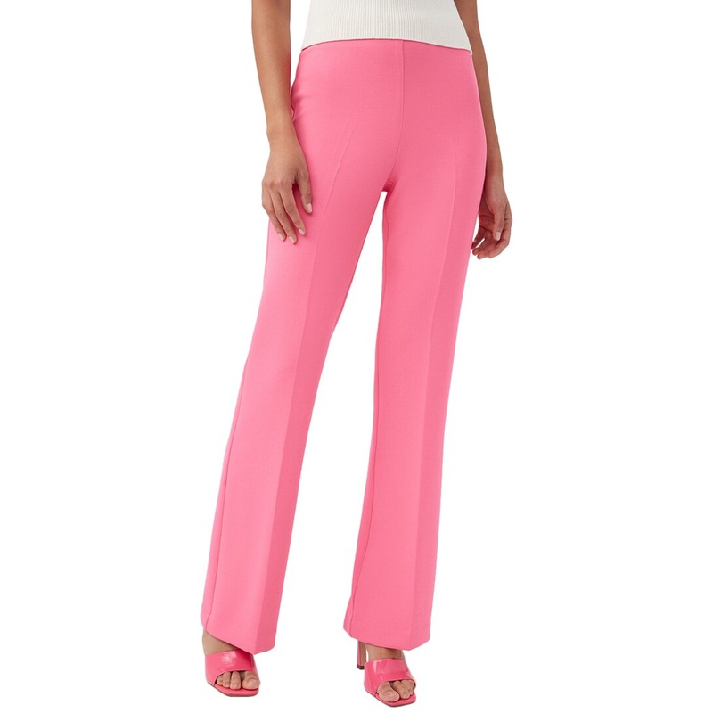 Introducing the glamorous and chic Trina Turk Chimayo Pant in Papillon Pink! Perfect for a casual yet sophisticated look, these stylish pants feature a flat front, high-waisted design, kick flare hem, and a full length silhouette. The side zipper adds a to