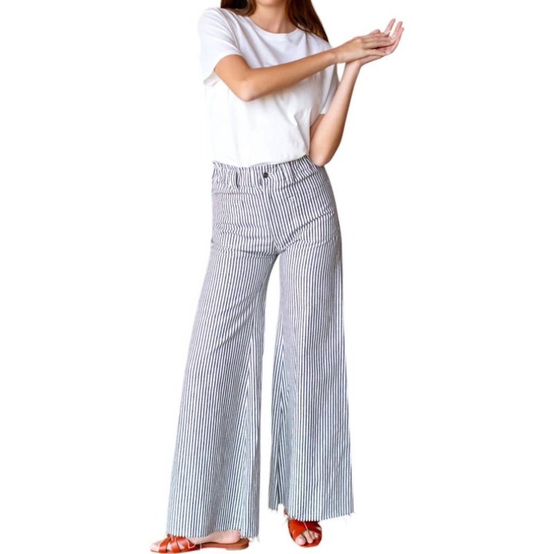 These wide-leg pants feature an elastic waist with paper bag detail and snap closure. They have front patch pockets, back pockets, and raw edge detail at the hem. Made with organic cotton hemp, the inseam measures 31″ and the rise is 12.12″ (XS). Made in NYC.