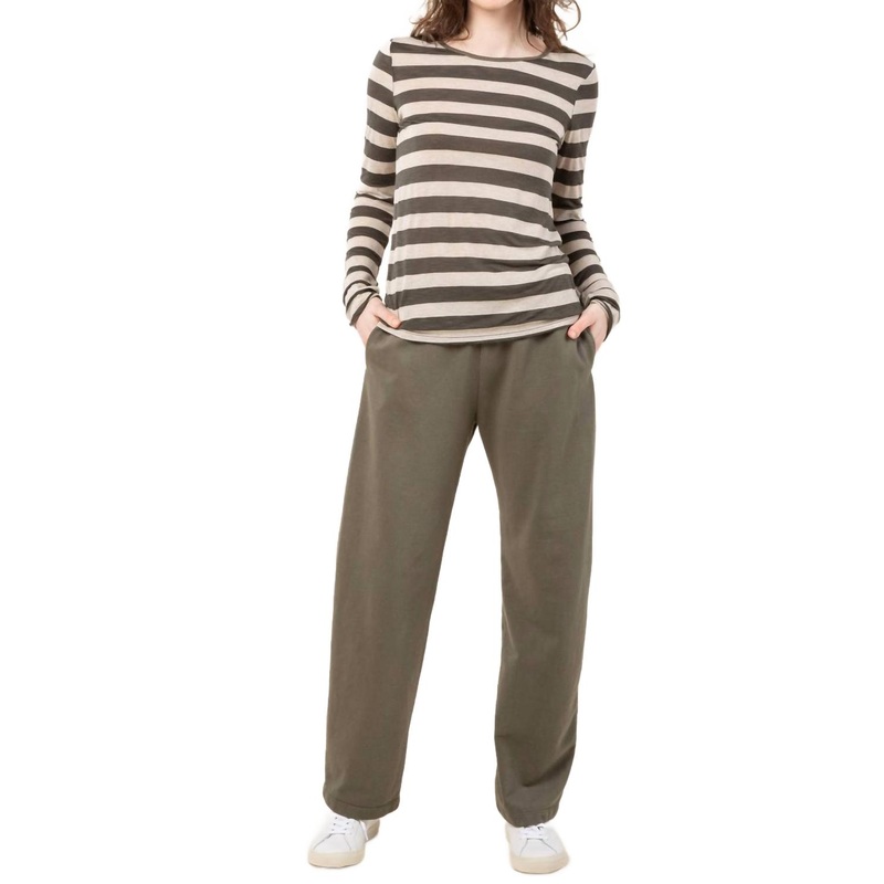 The perfect pant for running around town and looking cool while doing it.Introducing the Una Pants by Prairie Underground, a must-have for your casual wardrobe in a chic army hue. These track pants are crafted from solid cotton, featuring a pull-on closure for easy wear. Designed with a practical 31-inch inseam and handy pockets, they bring convenience to your style. Care is simple with machine wash and tumble dry instructions.