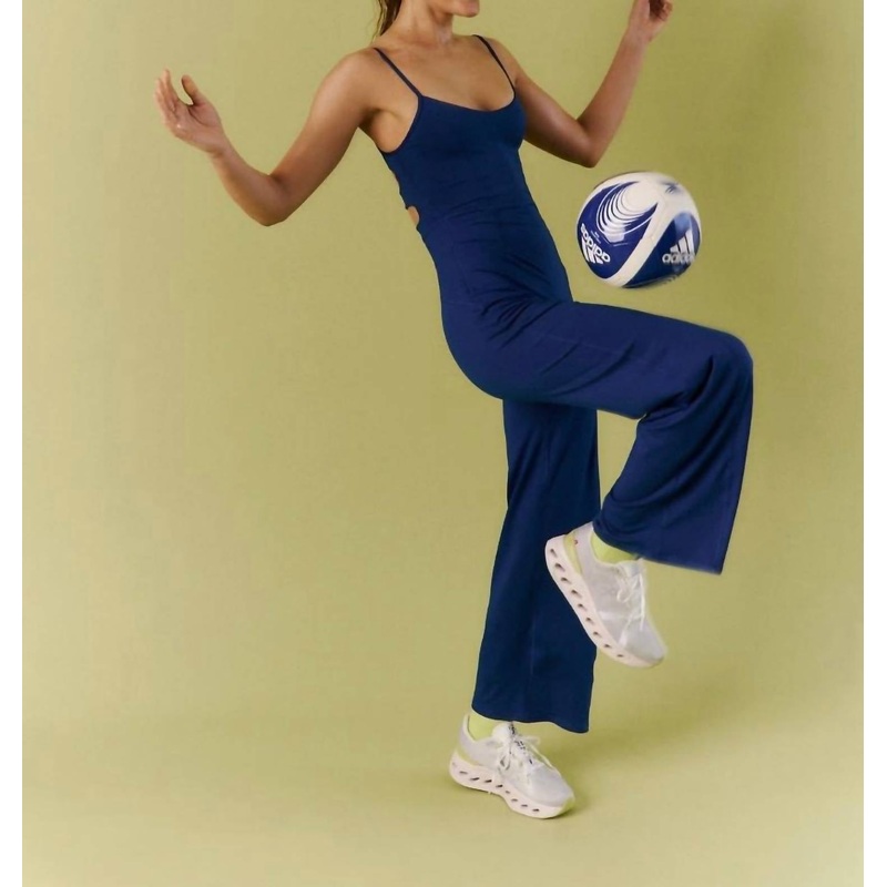 Slightly flared pants are all the rage right now and these are no exception. Pair these with your favorite tee for a more casual look, or with your favorite button-up blouse for an evening out.Introducing the Up At Night Onesie by Free People, a must-have for your active wardrobe in the striking Atlantic shade. This women’s onesie features a pull-on closure with a fitted silhouette and a flared leg, perfect for on-the-go comfort. Crafted with an ultra-soft peached fabric, it offers four-way stretch and breathability, along with a flattering scoop neck and strappy back detail. Enjoy effortless style and comfort, with easy machine wash care, making this onesie ideal for any active occasion.