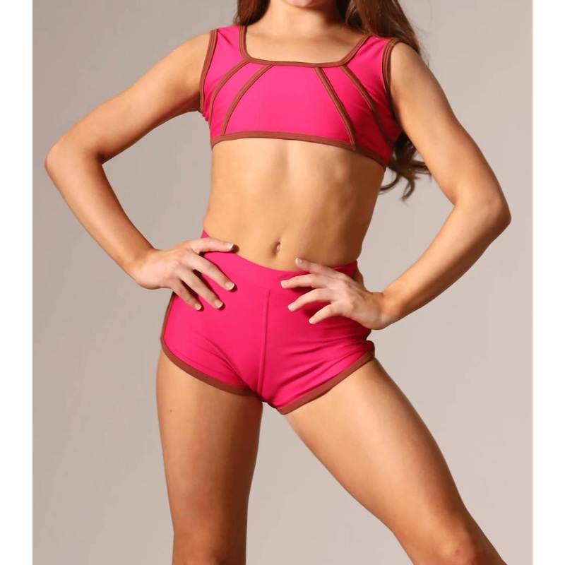 Embrace the energy with the Vitality Crop Top by Tiger Friday, a dazzling piece in Sugar Pop. This women’s sports bra is crafted from our most luxurious FormLUX fabrics, featuring sophisticated contrast piping for a chic look. The unique cage-style strappy back is paired with comfortable shoulder straps, ensuring support and style during any activity. Designed with specialized threads for enhanced strength and durability, it’s as sturdy as it is stylish. (photographed as kids)