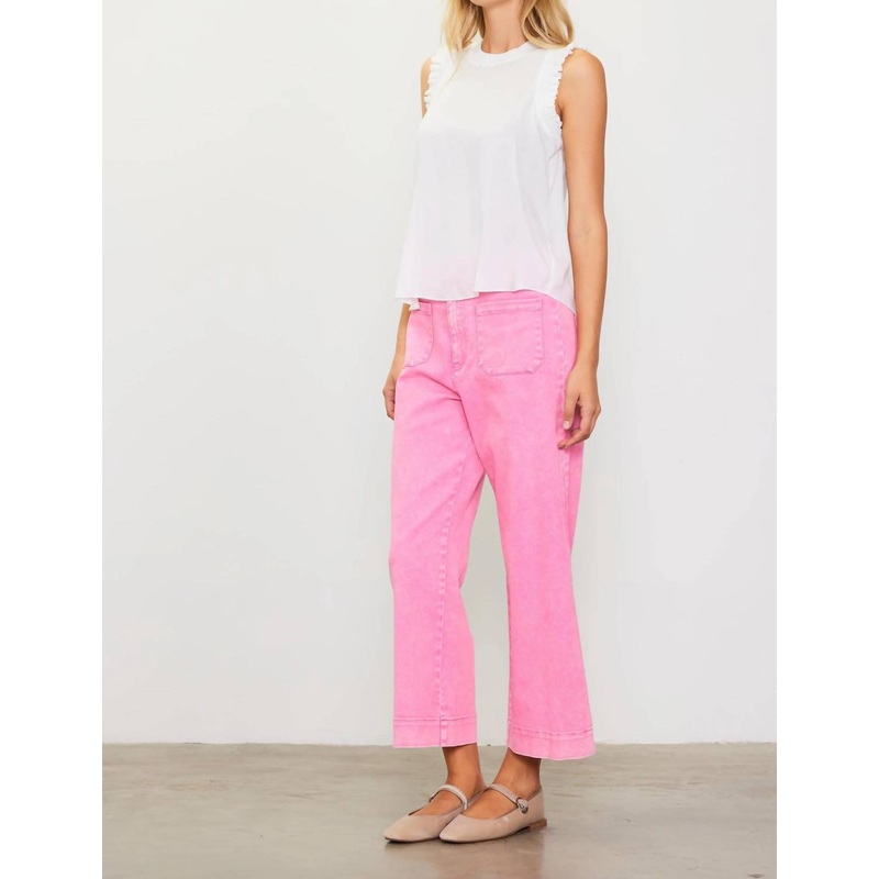 Upgrade your wardrobe with these cropped pants, designed to merge sophistication and wearability. The tailored fit ensures ultimate comfort during long days or nights out.These wide-leg pants deserve a spot in your wardrobe. Made from washed twill with a faded look, the cropped silhouette has a high-rise waist and patch pockets at the front. A great pair for refreshing your casual lineup.High-rise waistZip fly with button closurePatch pocketsWide-leg silhouetteCropped
