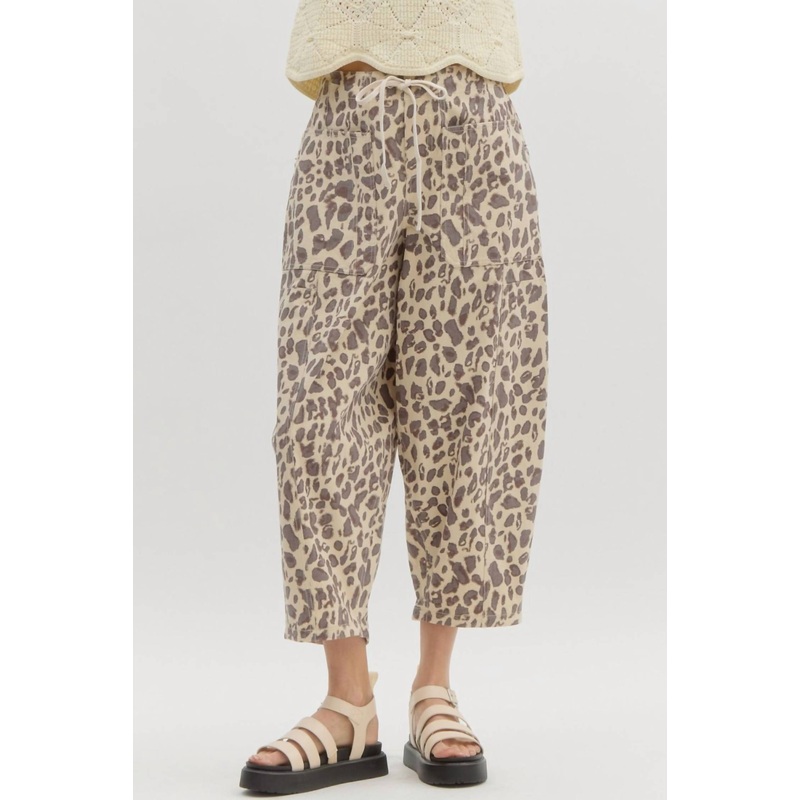 Stay on-trend and showcase your impeccable taste with these adaptable and stylish cropped pants. The perfect length to wear with your favorite mules. You’ll love the fit!Discover the Entro Way to Go Pant in Beige, a stylish blend of comfort and flair for women. Featuring an abstract leopard pattern in an ankle length, these pants offer a flattering mid-rise fit. Equipped with an elastic waistband and drawstring tie, as well as front and back patch pockets, they provide practicality without sacrificing style. Made from a midweight, non-sheer woven material, these pants ensure both durability and breathability.