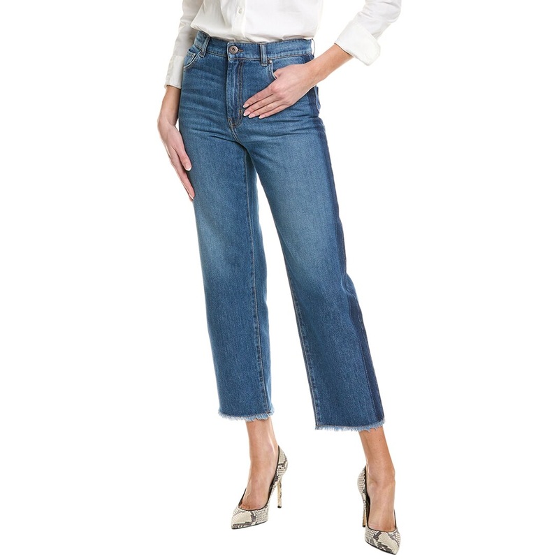 Elevate your casual wardrobe with the Weekend Max Mara Katai Jean. Crafted in a classic blue wash with fading and whiskering details, these jeans feature a frayed hem and belt loops for added style. The classic five-pocket styling and zip fly with button closure provide a timeless look. Made from 100% cotton, these jeans are comfortable and easy to care for with machine washable instructions. The inseam measures approximately 28 inches with an 11.5 inch rise, and the model is 5’10’ wearing a size 4. Embrace sophisticated, casual elegance with Weekend Max Mara. Made in Italy.