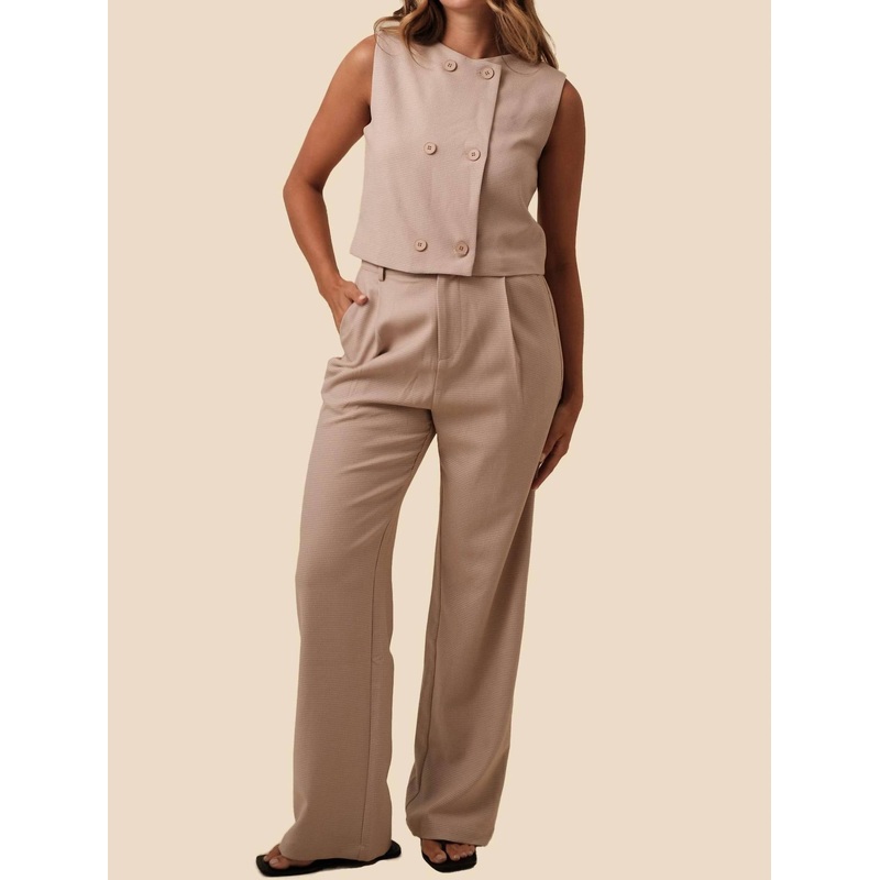 A perfectly tailored straight leg that you'll want in every color!Introducing the Whitney Gingham Straight Leg Pants by Needii, an elegant taupe and cream addition to your wardrobe. These full-length pants feature a buttoned waistband, side pockets, and fr