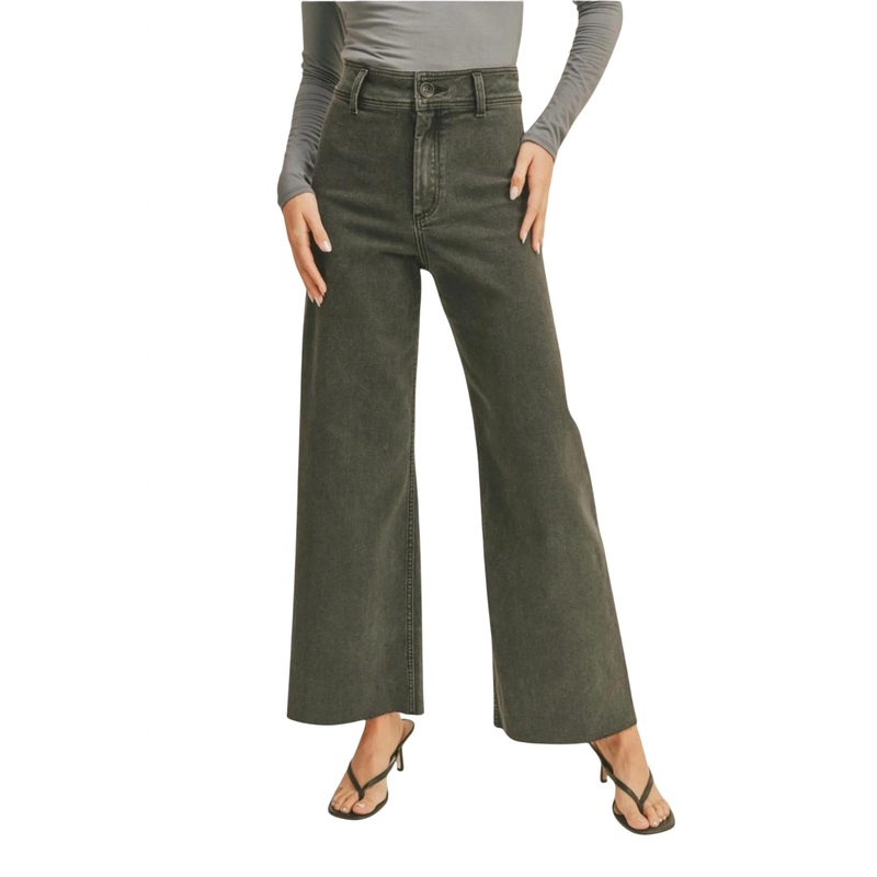Discover the ultimate in relaxed, contemporary style with the MiOU MUSE washed black wide-leg cut-off denim pants. Crafted from a premium blend of 98% cotton and 2% spandex, these pants offer a soft stretch for all-day comfort. Featuring a chic high-rise waist and wide-leg silhouette, the cut-off hem adds a modern edge. Made with back pockets and a secure button closure, these pants are as functional as they are fashionable. For optimal care, hand wash cold and line dry to preserve their impeccable form. Model is wearing a size small [5’7.5″ height, 24″ waist, 34″ hips]. if in between sizes, we recommend sizing up (for this colorway).
