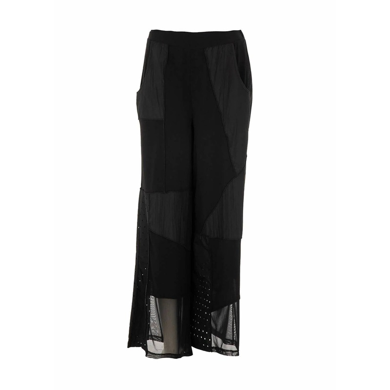 Chic and versatile choice in classic black. Boast a relaxed fit with a wide leg style. Featuring a high-rise waist and a 27-inch inseam. Crafted from durable polyester material. Designed with a convenient pull-on closure. Offer both comfort and a streamlined look. Care for them easily with machine wash instructions and lay flat to dry.