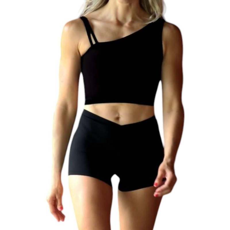 A sports bra that has it all - style, function and support.Discover the Eurotard Women's Asymmetrical Long Line Bra, a uniquely designed piece in elegant black. This sports bra offers an asymmetrical style with a left tank strap and right double camisole s