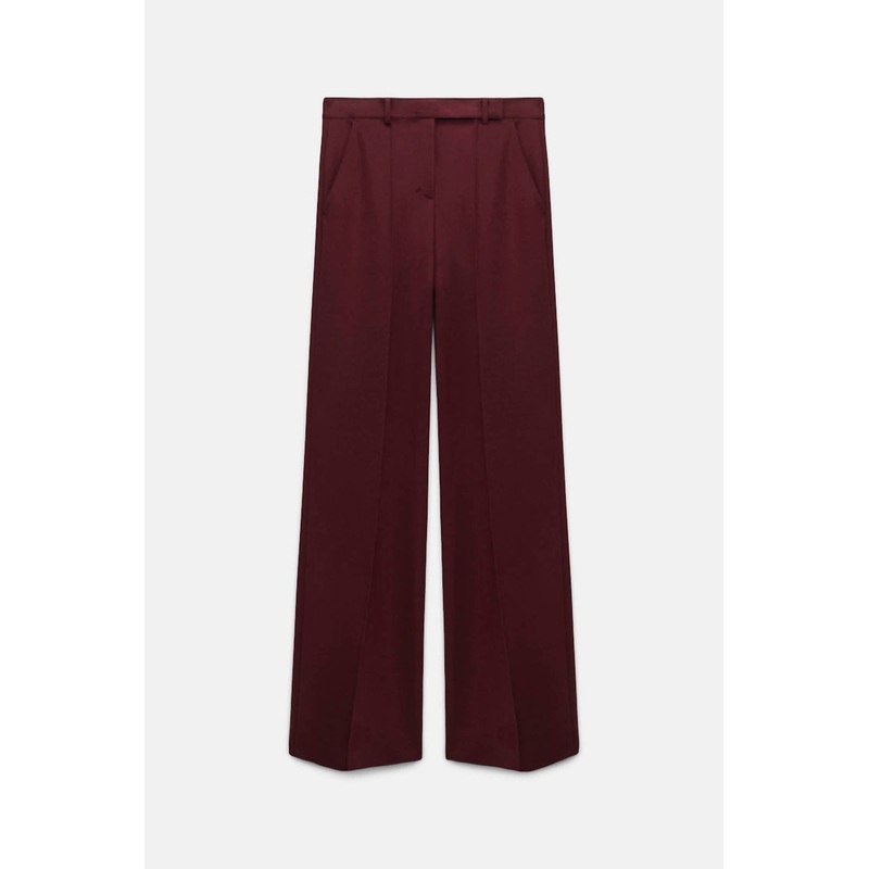 The trend report says boot-cut is in and that’s exactly why we love this style. They are fit to perfection, flattering on any body type, and comfortable. They will be your go-to all season long.Introducing the Women’s Emotional Essence Flared Pants by DOROTHEE SCHUMACHER, a sophisticated piece in a rich merlot hue. These pants are crafted from a luxurious Punto Milano blend of 67% Viscose, 28% Polyamide, and 5% Elastane, featuring a wide leg and pintuck pleating for an elegant silhouette. The design includes practical side and back welt pockets enhanced with slanted slit and zippered side pockets, complete with belt loops and an extended tab closure. Care – Machine wash on a hand wash program and coordinate with similar colors.