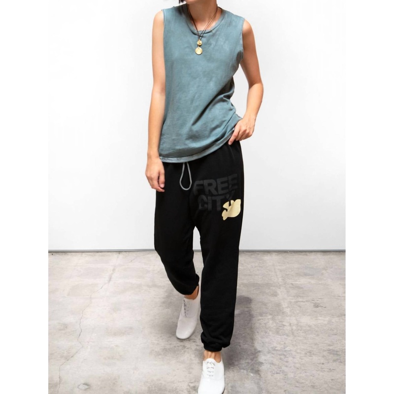 Offering a high-rise fit with a stylish graphic pattern. Made from lightweight, preshrunk 100% cotton French terry, these joggers are meticulously hand-sewn, washed, dyed, and hand-screen printed in Los Angeles. They feature a comfortable tapered leg and pockets, making them as practical as they are fashionable. Easy to care for, simply machine wash and line dry for maintenance-free style.