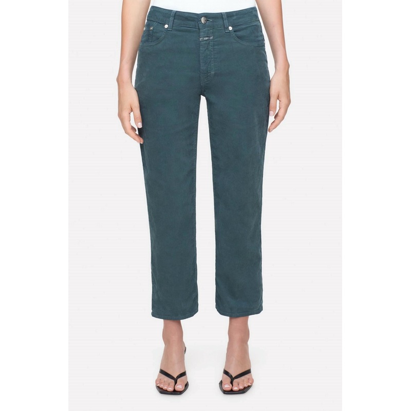 This straightleg pant is both stylish and comfortable. Did we mention the fit is perfection?Introducing the Women’s Milo Corduroy Straight Bottoms by CLOSED in a rich Pini Green hue. Crafted from a cotton blend, these premium corduroy pants offer a soft, textured feel, striking a balance between comfort and style. Made in Italy, they feature a button closure and a straight fit with mid waist and straight leg design. Enjoy the versatility and sophistication of these timeless corduroy bottoms, perfect for elevating your wardrobe. Inner leg length for size 27/32 is approximately 67 cm / 26.37 inches, with a front rise of about 25.5 cm / 10.03 inches, and a 1/2 leg opening of around 20 cm / 7.87 inches.