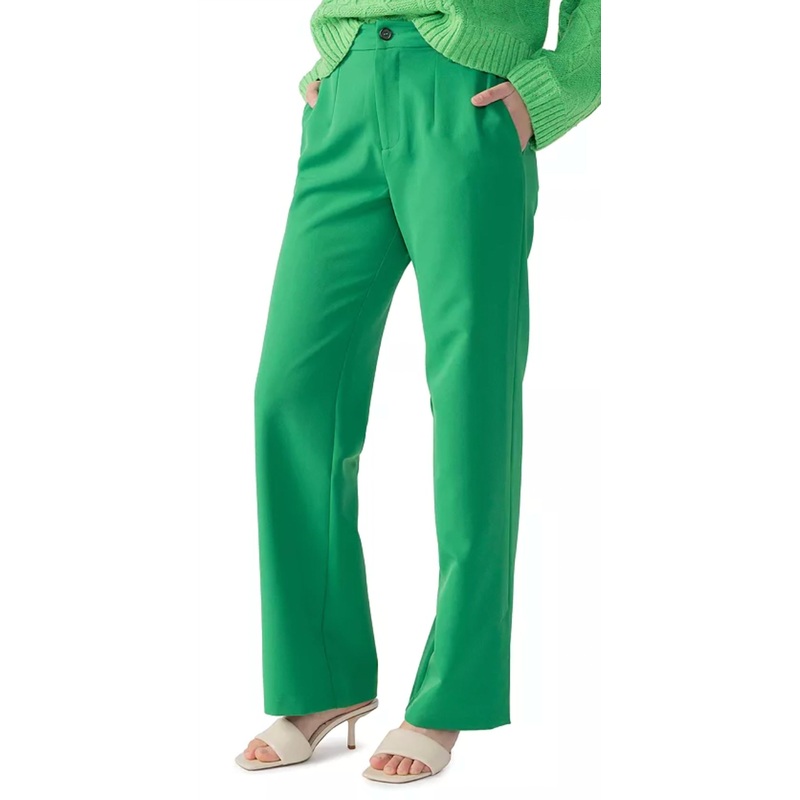 Introducing the Women's Noho Trouser Pant by Sanctuary, a chic addition to your wardrobe in a bright green hue. These high-waist, classic-fit trousers boast a mid-rise of 11.5" with a 32" inseam, straight leg, and side slits at the hemline for a modern tou