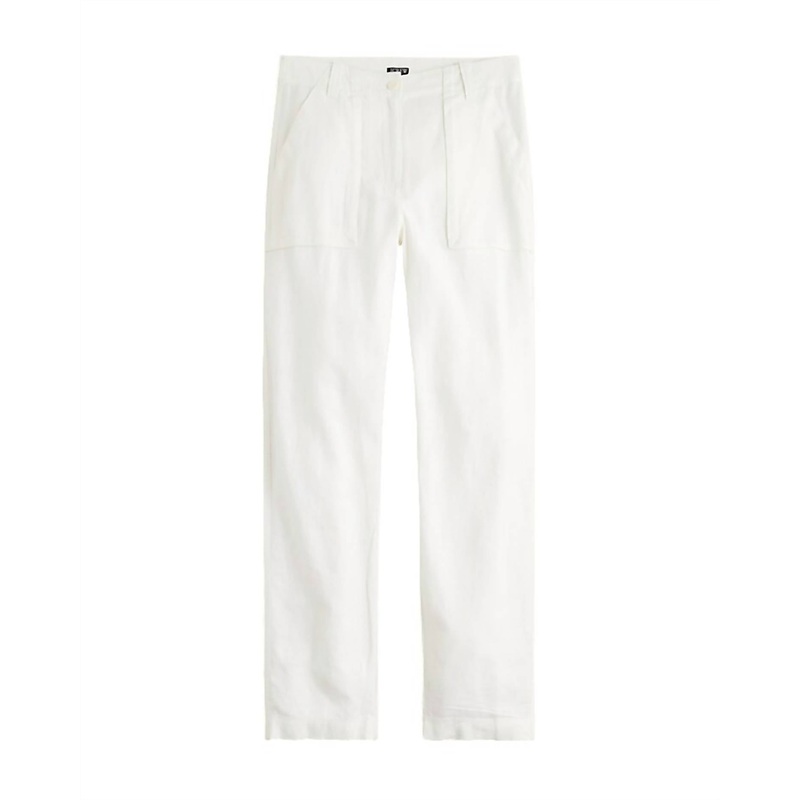 Elevate your wardrobe with the Women’s Seaside Cargo Pant by J.Crew, designed for both style and functionality. With its easy-going straight leg and slightly tapered design, the pants are made from a luxurious 55% linen and 45% TENCEL lyocell blend. Offering a high-rise fit with a front rise of 11.5″, this classic-fit pant features oversized, functional pockets and a button closure for added convenience. Boasting a 31″ inseam and a leg opening of 15.5″ based on size 6, these trousers will be your go-to for both casual and polished looks. Machine washable, these solid-colored white pants offer an effortless blend of comfort and chic style.