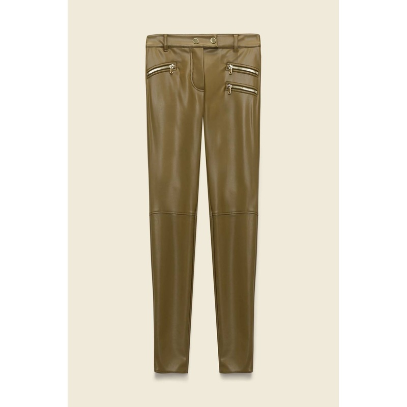 The Women’s Sleek Comfort Pants by Dorothee Schumacher are crafted from a soft blend of eco-friendly materials, featuring a dark olive green hue for a modern look. These trousers use a blend of 60% polyurethane, 37% viscose, and 3% elastane, and are finished with stylish zippered pockets and snap fasteners that give a distinct biker vibe. Closure – Zip closure. Care – Gentle cycle or delicate wash.