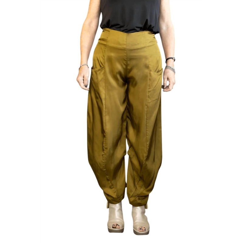 Polished look with its shiny material and sleek fit. With pleats at the calves and pockets on the sides, these pants provide not only a stylish look but also great functionality. A back invisible zipper closure for secure fit. Dry cleaning only. Made from 100% Cupro.