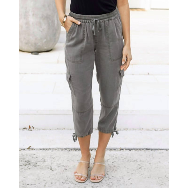 A straightleg pant that workes season after season. Dress these up with your favorite blouse or keep it casual with your go-to tee.Elevate your spring wardrobe with the Women’s Tencel Cropped Cargo Pants by Grace and Lace, crafted from luxuriously soft Tencel Lyocell in a solid olive color. These solid olive pants boast a pull-on closure with a full elastic waistband and offer a relaxed fit. Designed in a cropped calf length with functional ties at the hemline, they feature fully functional front, back, and side cargo pockets for a practical touch. Perfect for a variety of warm-weather looks, care for these pants is effortless with machine wash and line dry instructions.