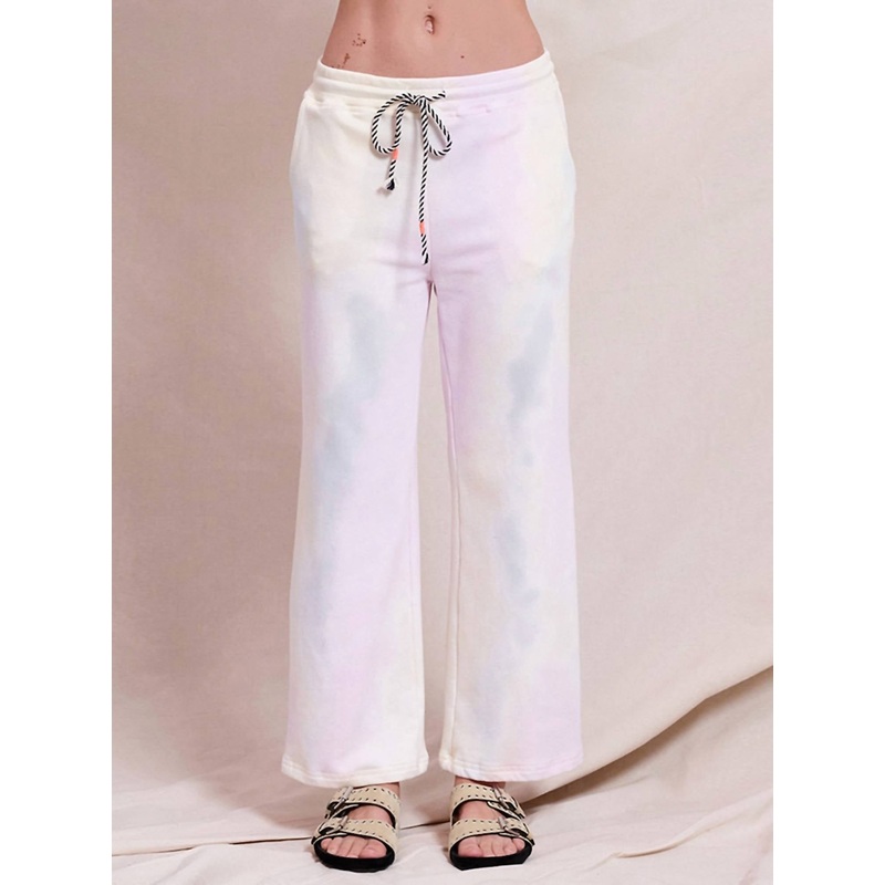 Experience comfort and style with the Women's Tie Dye Pant by Sundry, crafted in a trendy optic white hue. These pants are expertly made in the USA using a soft cotton blend of 50% cotton and 50% polyester, ensuring a wide leg silhouette that's both chic a