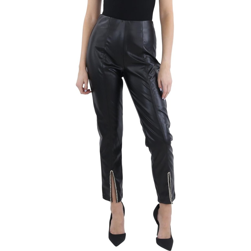 Womens High Rise Faux Leather Ankle Pants
